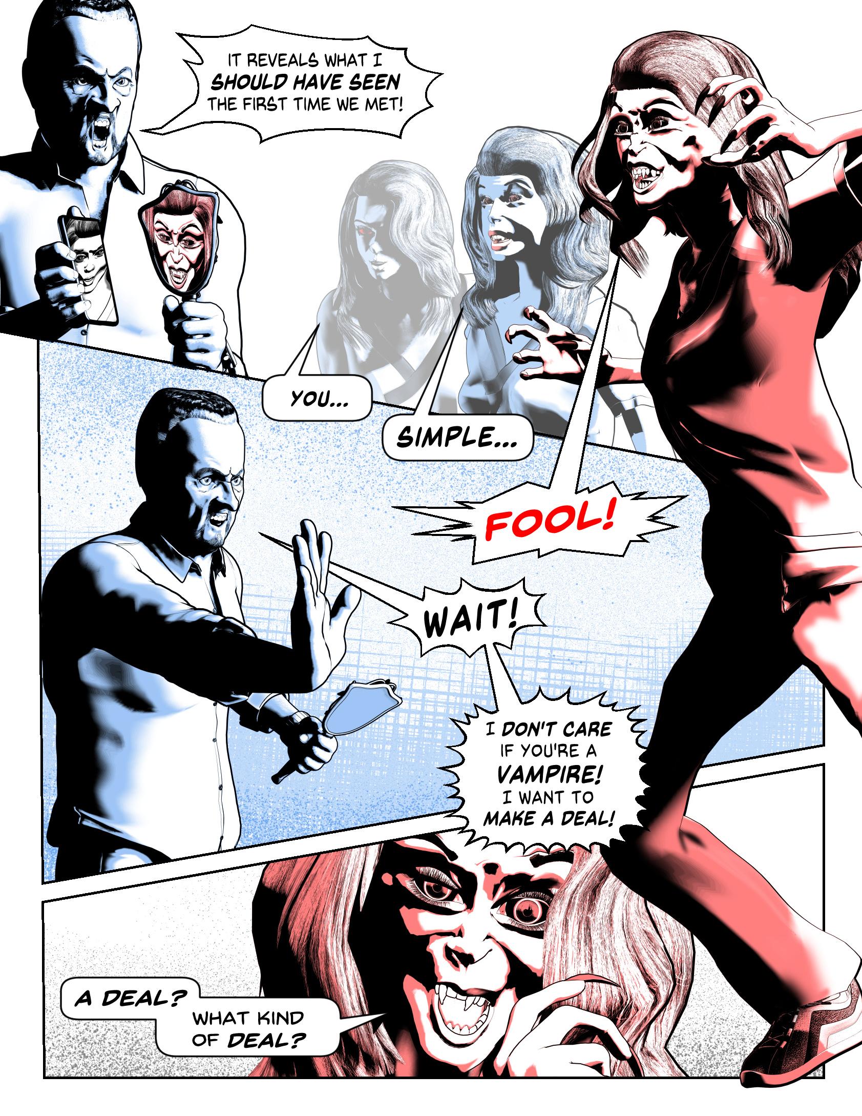 I did get a chuckle out of your last comment and I appreciate it. I'm hoping Rex's dialog adds a bit of maturity as it touches on life and death and dealing with our own mortality. But... this is a horror comic. She's a vampire and uses being a hospice nurse to get access to blood that no one will miss. :-)