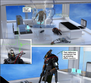 9)  Don't be a 3D purist.  If it's easier to do it in postwork, do it in postwork.  I could have spent 20 minutes getting the wall behind the character just right, fiddling with texture scaling, color correction, lighting, etc.  Instead, I rendered the character then slapped the wall in afterward and spent 20 seconds messing with the color.  Readers don't care how you achieved something (so long as you didn't steal another's work).  They care about the final product and how regularly content is updated.  You can have the most gorgeous comic produced in the last 10 years, but if you only produce 3 pages per year, they'll give up and move on to other comics.