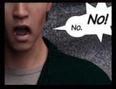 On the last panel, I would add the reaction (that panel when he says: "No. No!"). However, I would tighten up on the face a bit more. You can also crop the face to make it more interesting (though this is personal preference). Apologies in advance, since I took your render just to show a possible crop. Hope you don't mind.