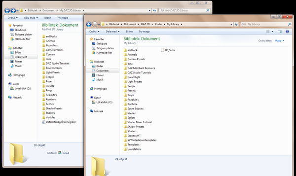Now over to my questions... Is it safe to either simply merge the two libraries (C:\Users\Carola\Documents\DAZ 3D\Studio\My Library & C:\Users\Carola\Documents\DAZ 3D\Studio\My Library) ? And if so, to which one of those would it be best to merge it?