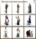 As far as the clothing goes and it being truly medieval, doesn't bother me at all, since I do fantasy medieval anyway.  Plus, you gotta go with what you have to work with.  I pretty much own all of medieval stuff availavble as well, so I feel your pain lol.  Really great variety in this.