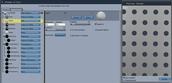 The TILE shader actually makes nice round holes if you fiddle with the mortar and radius settings.