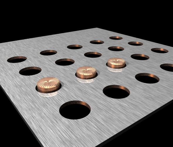 I can not carry a metal material with regular round holes. When I make all rendering is unlikely: the X-axis is not credible ... occur as overlapping and spacing of the holes changes so little credibility. The holes are a seamless image on the alpha channel. I tried to change many parameters, I tried to use the projection to divide the solid ... Can anyone help me?