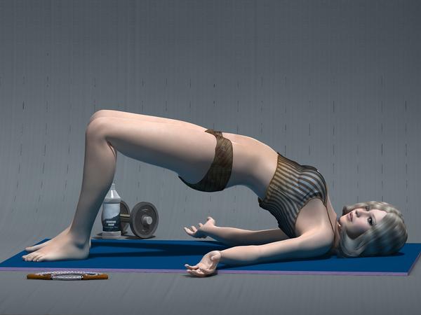 Edited image: Dumbell was moved in a place where he doesn't look like rolling over her head :)