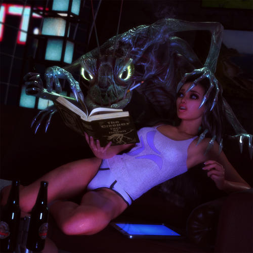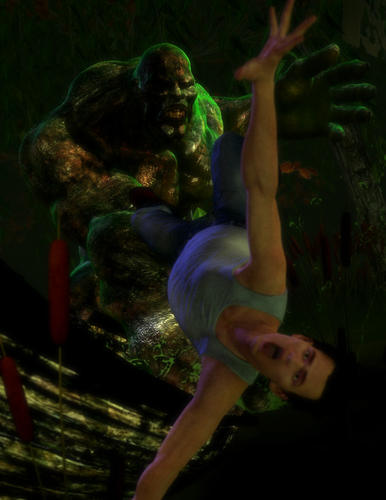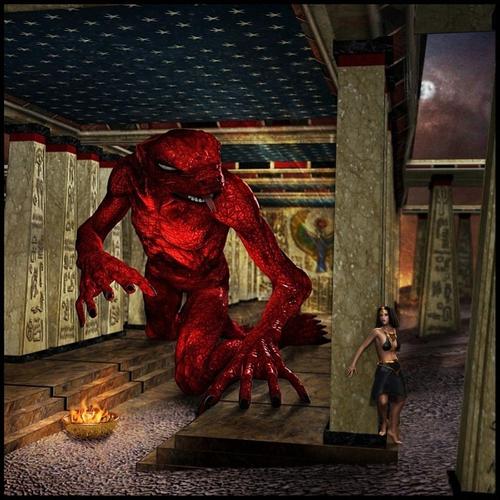 Figure used for Monster: dialed up half Undead Fiend and added some Genesis Creature Morphs, then applied a Lizardaians M4 texture that I colored red in Photoshop.
