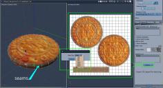 pour aller plus vite, je choisis parfois de réaliser un mapping sur une seule face (First choice.jpg). Par exemple sur cette gallette je n'ai utilisé que le dessus. Si je choisi la projection plan sur cette face, cela fonctionne très bien (Good map.jpg).