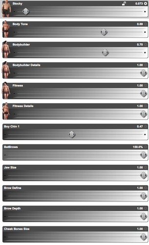 * Say you want to make a specific type of change to your character (for example, widening the nose), and you've got more than one morph that will do the job. Sometimes I've found that two morphs at half-strength work better than one morph at full strength. Dialing a morph all the way to 1.00 (or 100%)--or beyond--can sometimes cause some unattractive distortion. Using more than one morph to achieve the effect can sometimes soften this, as each morph is affecting the mesh in a slightly different way. This doesn't always hold true, but it's been my general experience.