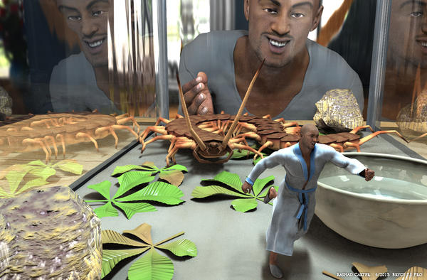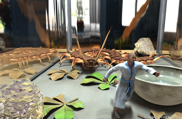 Edit: Centipede is modeled almost entirely in Bryce. The only thing non Bryce was that I had to export the shell along the back because it was made of metaballs and they were getting too unstable, rendering with holes all over the place. I boolean converted them and re-imported them back into Bryce.