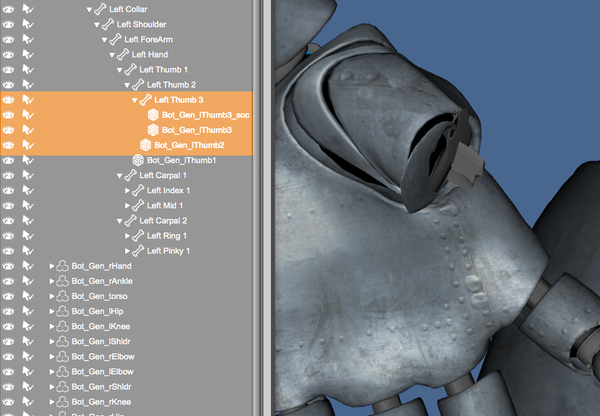 After a few hours of trial and error to get this product to work again, I'm halfway there. Namely, I reloaded the old robot and kept the old hands. Only that now the left thumb is corrupt. It comes up like this and I have to hide everything which is the left thumb or it's getting impossible to render (it all turns into a blue-gray gitter)