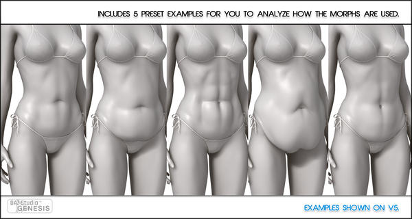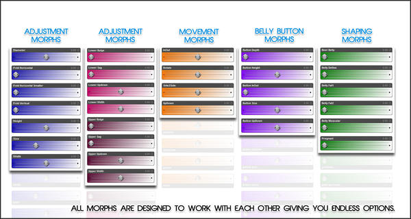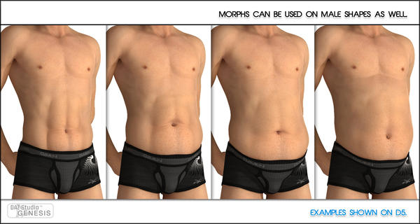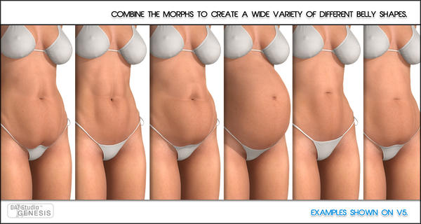 This project was fun. I wanted to create a Belly product that would give people the chance to basically construct their own belly types. It has lots of shaping, adjustment and movement morphs to play with. Here is a quick example of what you can do. Also works on male Shapes.