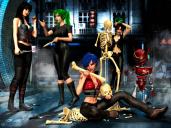 I wanted to tell a story with this render, using four of the Aiko 8 character figures, rBot, and the LoREZ Skeleton. Pose Control and Pose Blender were used on all these figures. Both are remarkable sets of scripts, which enabled me to create unique and figure-specific poses that could be saved to my own personal pose library. Having selected a range of poses with potential from Genesis 2, through Genesis 3 and Genesis 8, I used Bone Doctor Pose Control to do conversion work on the poses so that I could save them as Genesis 8 Aiko poses. This included male poses as well as female where a particular element of the pose could be integrated later on. By the end of this process, I had a quite a range of poses to choose from. For the skeleton, I found Genesis 2 poses were a good match to the figure, and with rBot I was also able to match Genesis 2 poses with a little tweaking of the limbs.