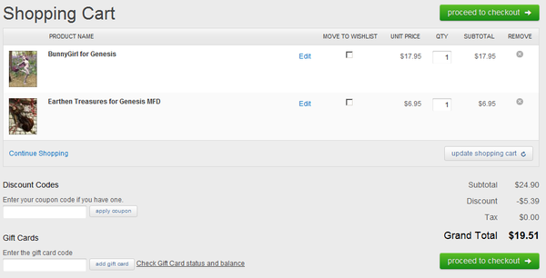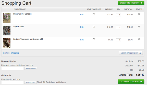 Yeah, but even if I take Age of Steel off, and leave Bunny Girl + Earthen Treasures in (MAB + MAB&WillDupre;), the discount is still wrong. It is not even 30% for a single item per artist.