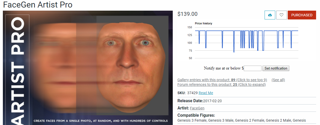 I am a little disappointed that the update came with so little fanfare in the store. I had no idea the store had updated. I only knew because I bought FG directly, and I received an email from them about it. But people who bought from Daz never gave FG their email, so they have no way to be contacted. This thread is the only notification people who bought it from Daz currently have. Its a perfect time to have a FaceGen related sale. This update really tackled most of the nagging issues FG had, so it is well worth looking into. And if anybody is on the fence about buying, a free demo is available at FaceGen's website.