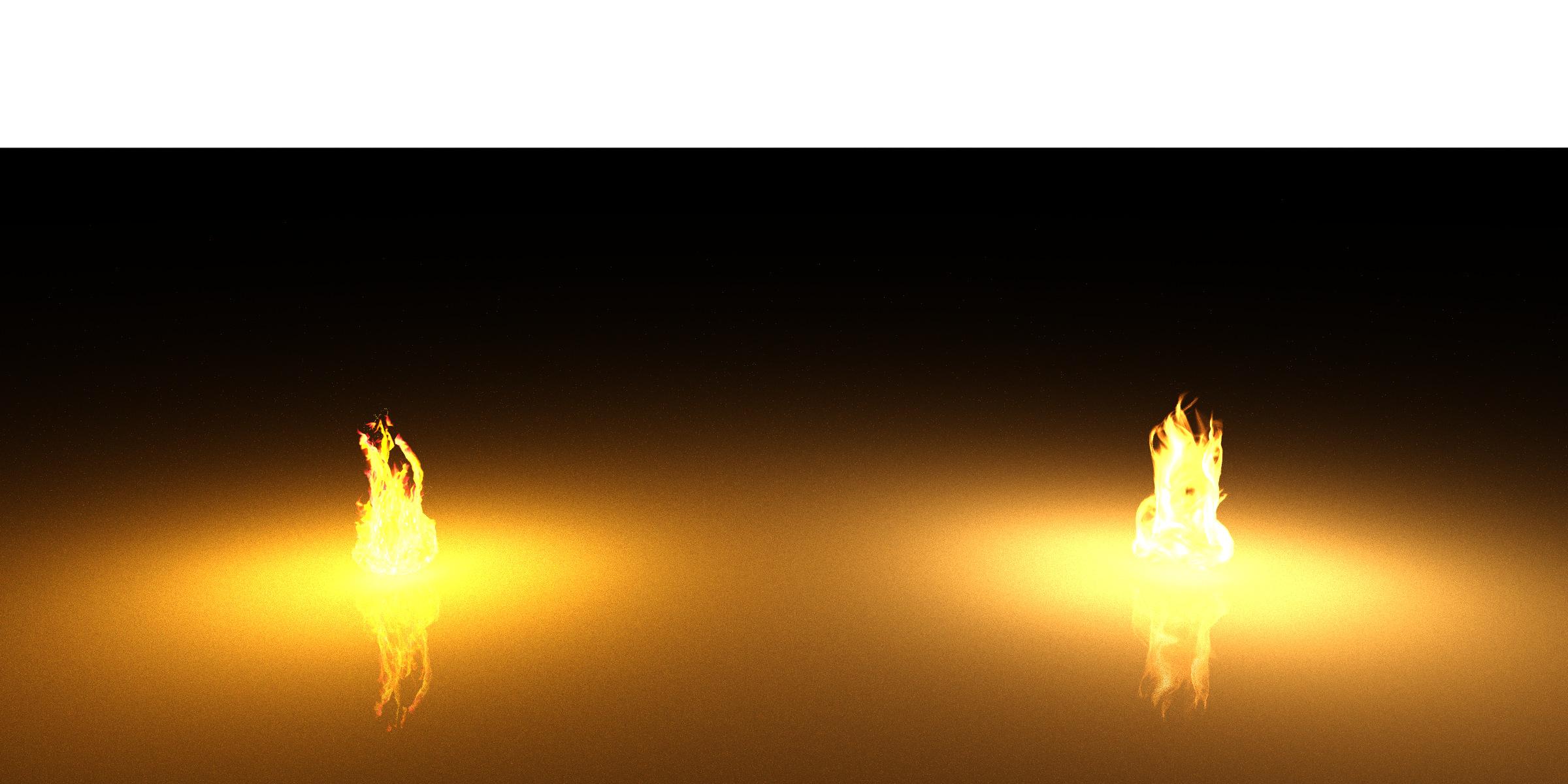 Second Test: I kept the second flame from the first test with no other changes, and also the fourth flame from the first test and changed the temp and luminance settings to match the other flame in the image.