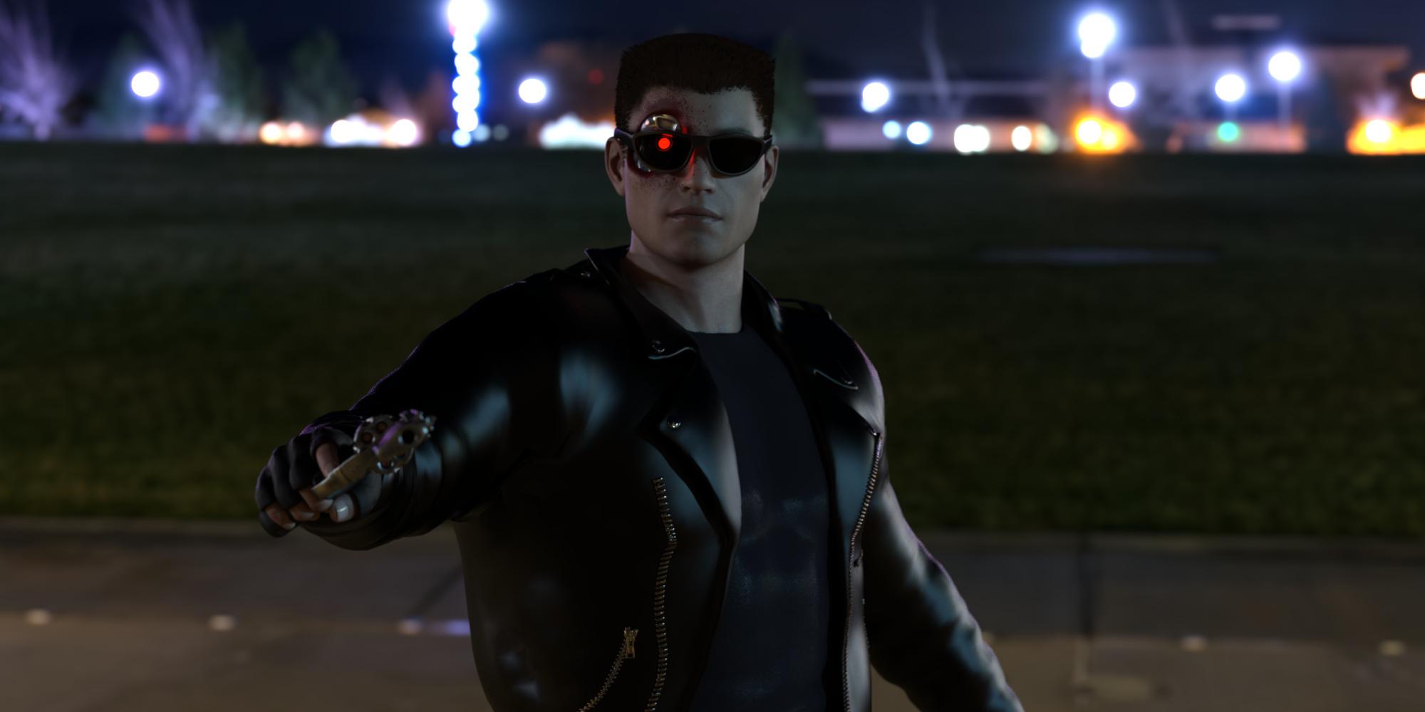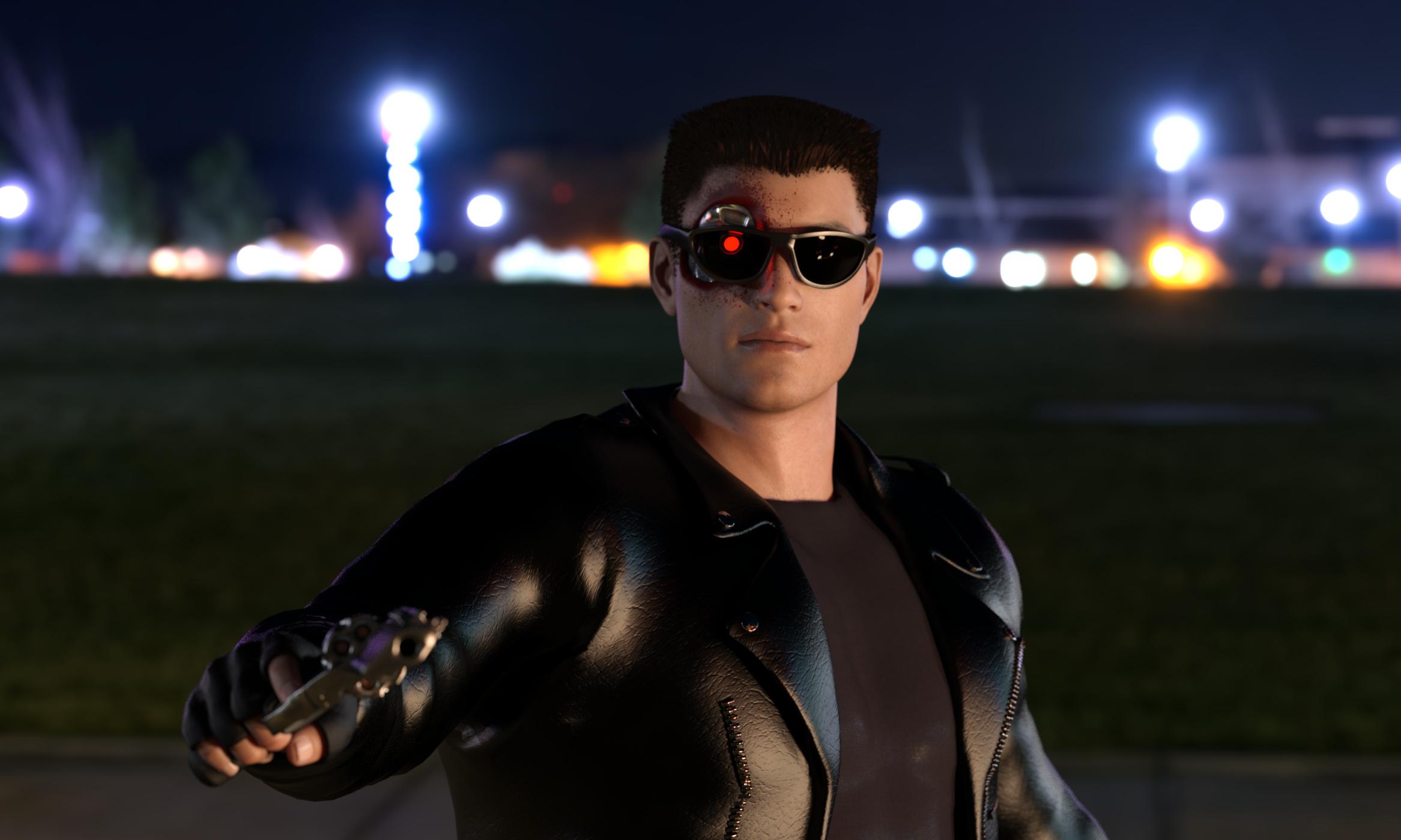 In the Termination image I like that the red light of the goggles are in row with the city lights, but the city lights right now are stealing the show.