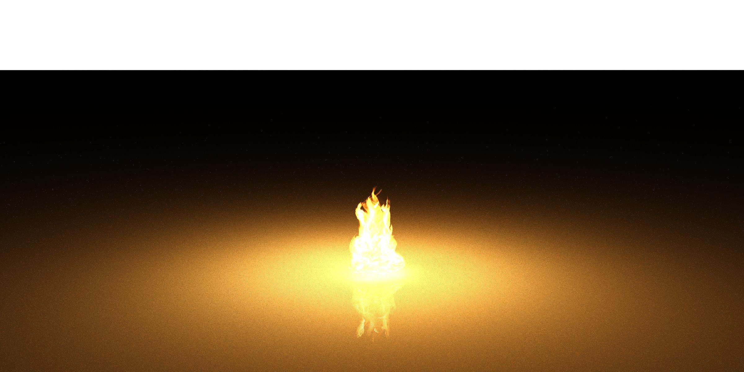 Fourth Test: I dropped the second flame altogether, and duplicated the fourth flame, which had the altered temp and luminance, and also my maps/textures. On the two copies I replaced the maps with other maps I made, changed the size of the props and rotation along y-axis.
