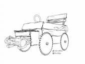 The Buzz Wagon driven by Rufus Ruffcut and Sawtooth - a lumberjack and a beaver in a wagon with buzzsaws for wheels, which gave it the ability to cut through almost anything, damaging or destroying the object in the process.