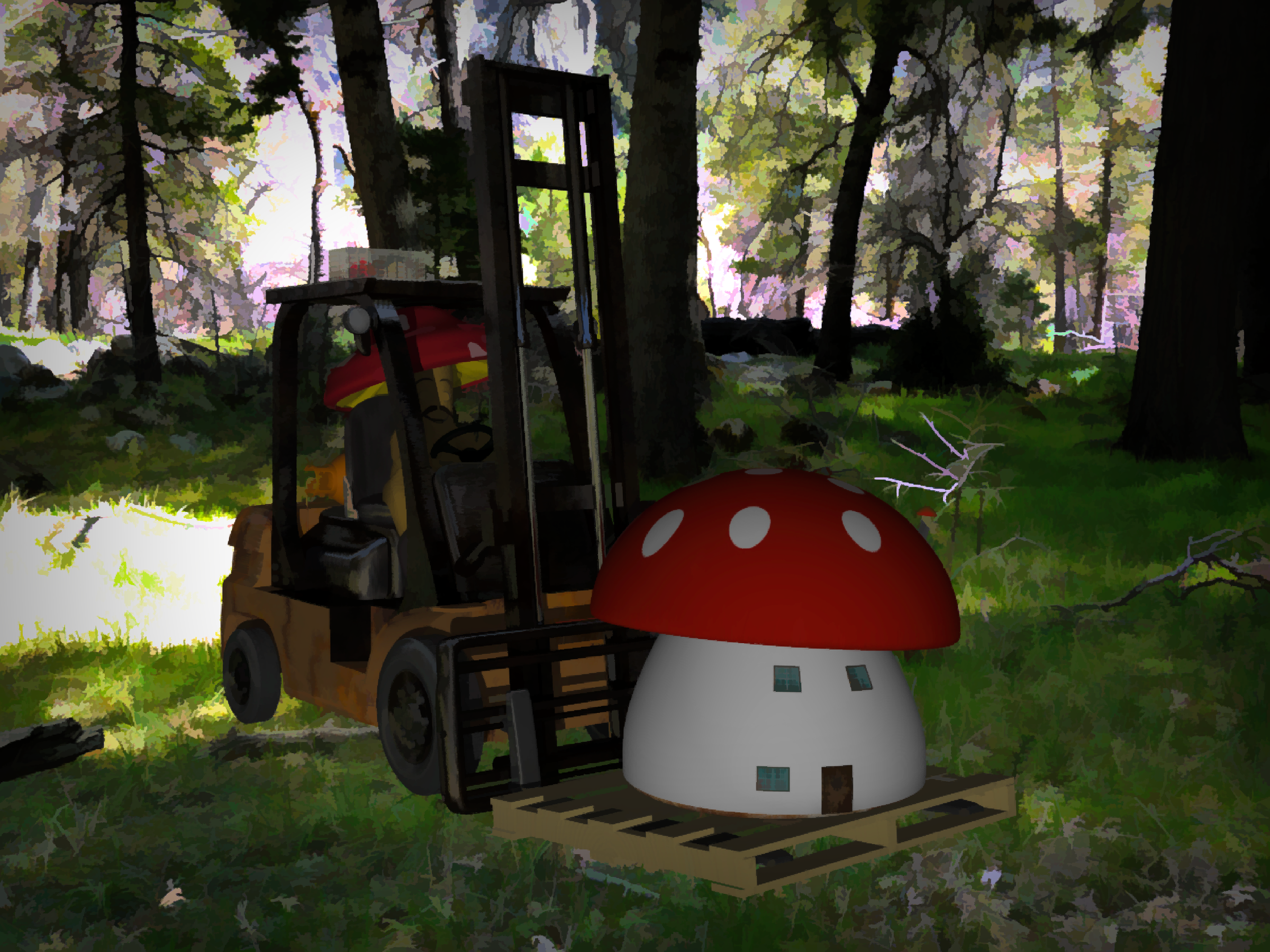 started another wacky model today.. wanted a forklift for a LoRenzo render and didn't have one... so... what to do... model a Wacky ForkLift for my image!