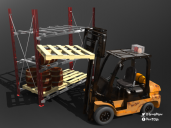 my Wacky Forklift ( has fork morphs ) with pallets, barrels and a rack to stack 'em on... !!