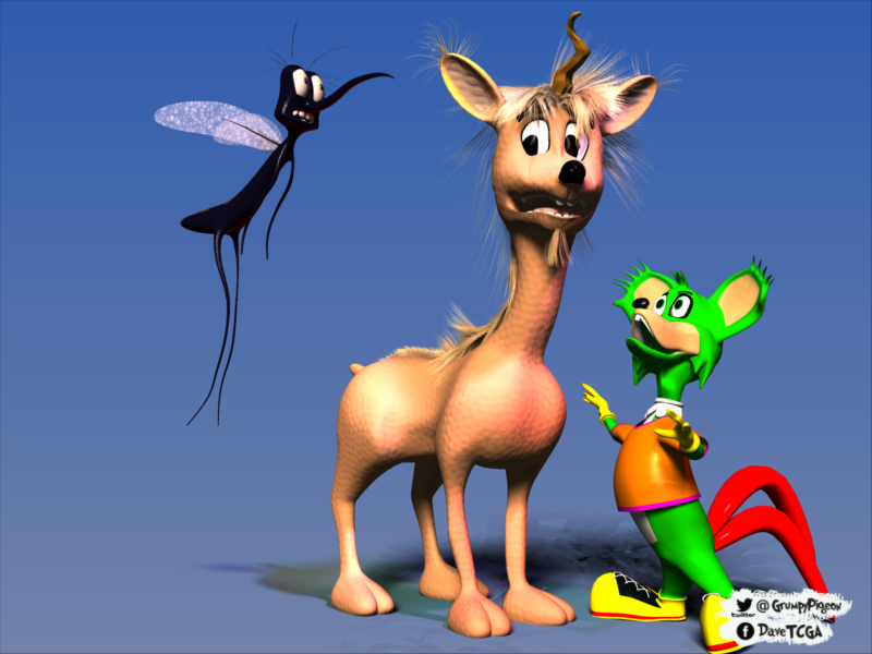 I modeled a simple wacky stinger mossie with some morphs and boned it to join the thingee group... zzzzzzzzzz...... pesky things they are!