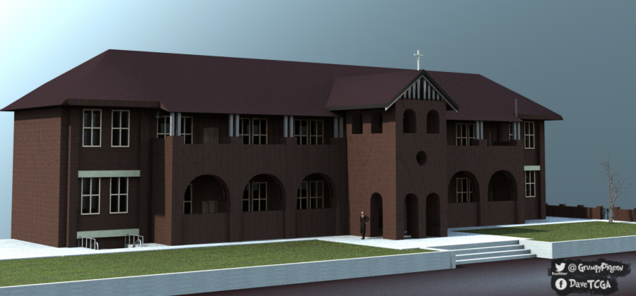 Going off memory and an old photo I modeled CBC Crown Lane which I attended in 1971-72 .. has since been demolished.
