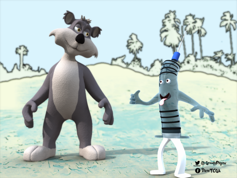a wacky syringe and a bear kinda model.. I just pushed, pulled & extruded polys till I got something and it ended up like this!