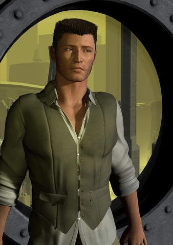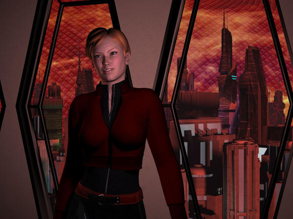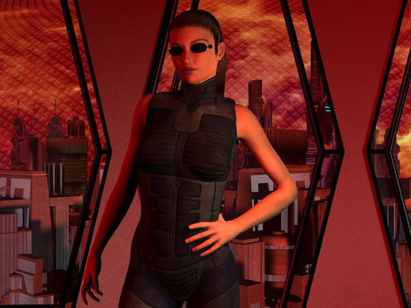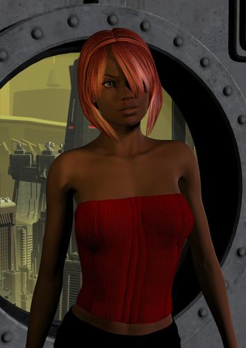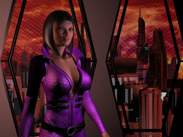 Oooh, what caught my eye was the purple outfit, and the green in the city scape. Nice touch!
