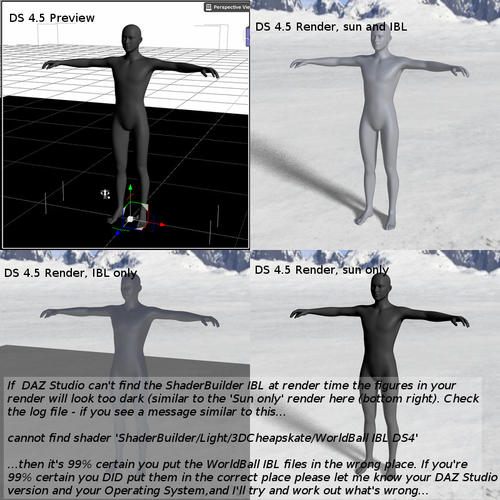 To check, load the WorldBall with the 'E01 Snow' environment, load a figure, and compare with the three renders in the attached image.