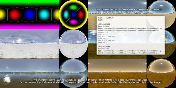 Tentative first steps into using HDR lighting with the WorldBall start at post #88. First environment set to include HDR lighting (as well as normal lighting, not instead of!) is E18 Alien Desert (post #94).