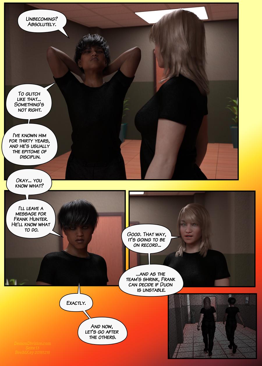 Yesterday saw the posting of page 51 of Demon Division, and it's another fragment of the puzzle that is Duon. I'm really looking forward to the interrogation by Jane Higgins (Duon, not so much), as it will allow for some insights into the work of the Retrievers, as well as shed some light on Simon, Seth's and Duon's interaction prior to the arrest of Siomon's little brother.