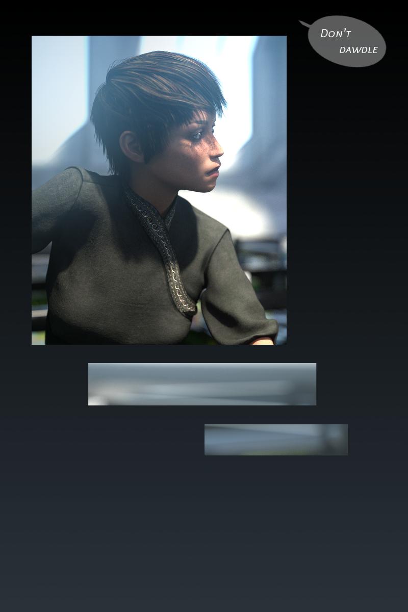Bee, I have been thinking some more about the trouble with conversing the story from page format to scroll down format. There is one thing that came to my mind which might help the reading flow and can be done without much extra work. I'm using this myself especially for scene changes or time shifts, that using small panels with bits from the last scene blurred more and more, so you get a fadeout. or alternative a fade in. Will be posting some examples here :
