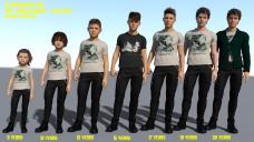 For Simon, I had to deal with two issues. The first is his skin; the one he's using as an adult is Lucien 7's skin, but that doesn't work at all for most of the younger characters. I used Tween Ryan 7 for the smoother surface. Fortunately, the eyebrows fairly match between the two skins, so I didn't have to edit them.