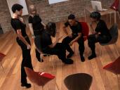 As for lots of people, I'm facing the same problem, so reduce polys to lowest level whereever possible. make all bones inisible (closed eye icon in the scene tab) that are under a layer of clothes, and after the intro shot try to focus on closeups, with only three people max in the camera and make the rest of them invosible as well. I started always having a group in my scenetap for people who are not in a sho and I parent them in place to the group and make the group invisible, so I don't have to start posing from zero. And on top I made planes with some people which are out of focus in a render. I have one fo the servinggirls and the fathers now, will have to make more though (see attachment). This sure works easier with standing characters and the keep on having the same form. you need a transmap for them as well.