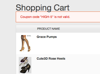 >>Coupon code "HIGH-5" is not valid.<< UGH!<br />