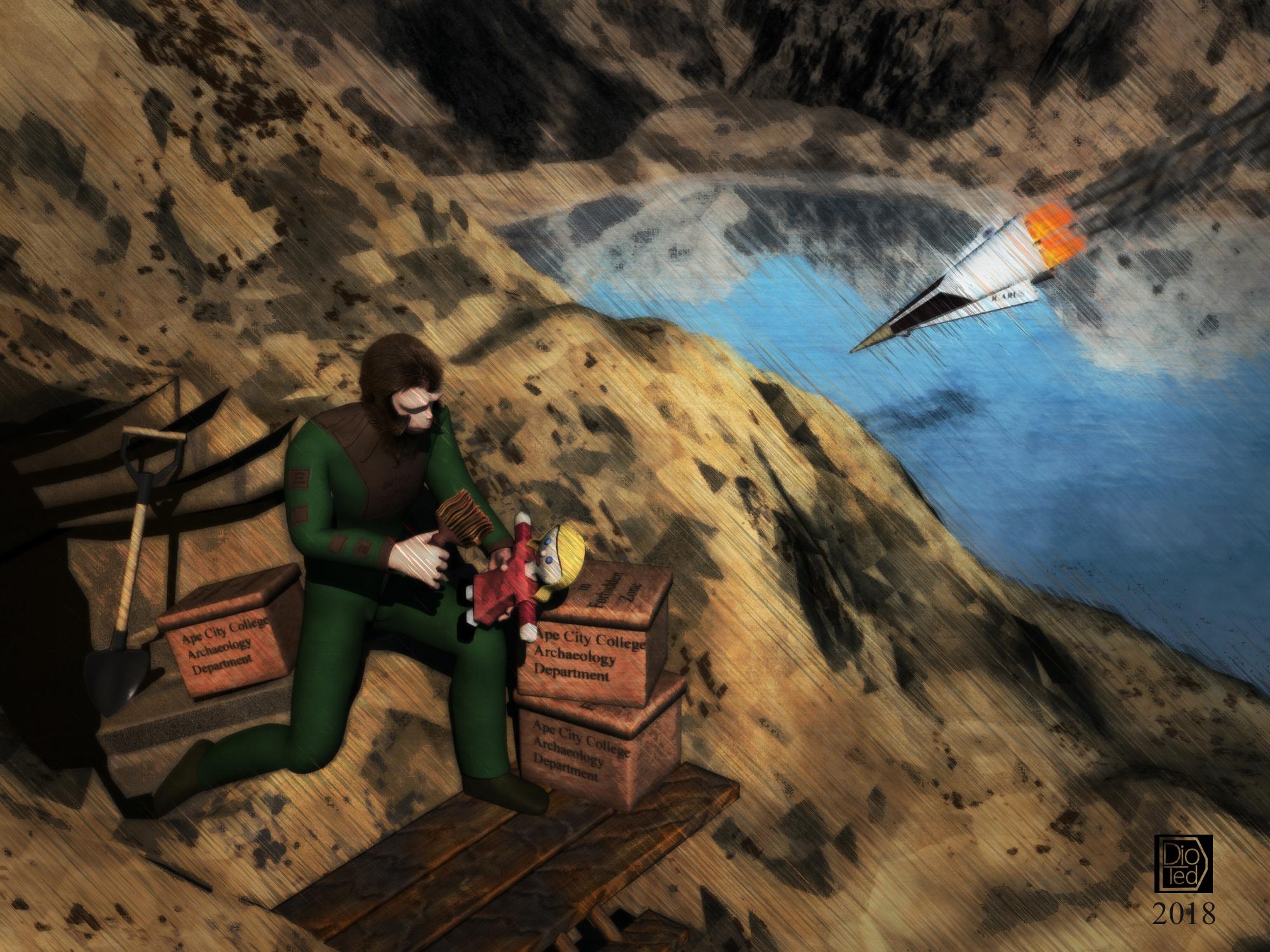 Lots of post-work and I used an object pass to isolate the three kids so I could work on them. Used Ron's brushes and a cloud pic I took.