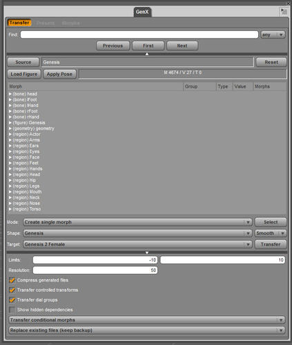 However, when I try to transfer a Genesis character morph to G2F, I get lost.