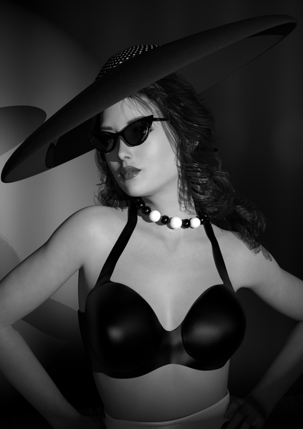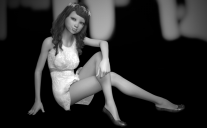 You have the noir style down – not just the lighting, but the attitude. At a smaller size, this one could pass for a stylized photograph. At the full size, though, her skin does have a slightly plastic look that isn't in line with the detail in the rest of the photo. By this, I mean that if we can see each and every hair that clearly, we should see some more texture on her skin. But that's a small detail; keep up the great work and I look forward to seeing more from you soon.
