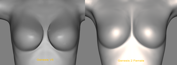 Just as a small example, of how rigging for the female shape is superior.. breast movement. In the image shows moving them together with joints. Genesis, having been rigged on a flat chest, doesn't work so well on the females, being meant to be a mid-range approach; and the alternative is obvious. I could go through and show many examples of where that is true.