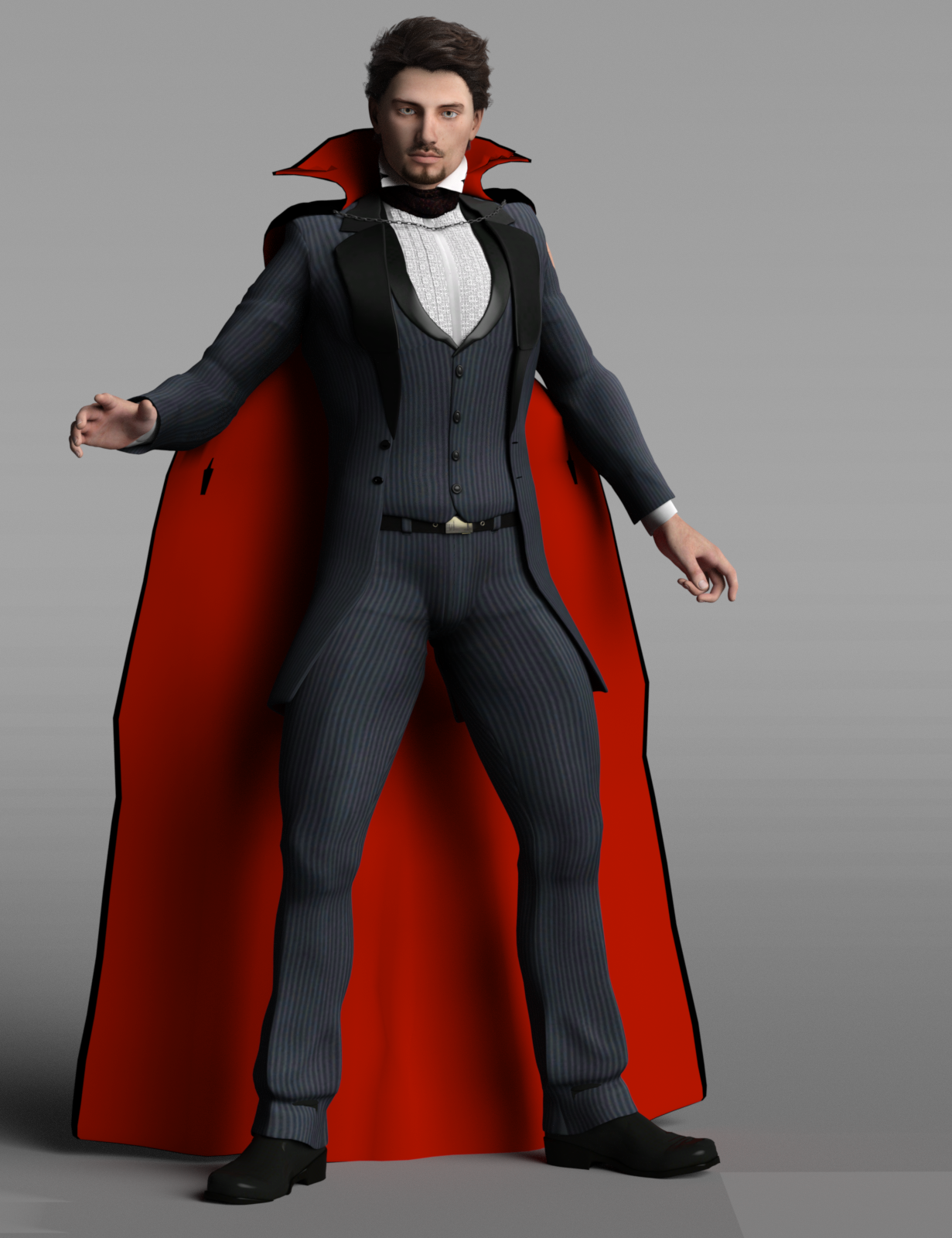 These are very quick and dirty. I just autofit straight to G2M, when perhaps going from M4 to Genesis, saving and then fitting to G2 might give better results. The cape was very fiddly and the points broken. The collar points looked broken in some poses and not in others. And, since Uzilite tends to style clothes for narrow people (the suit comes with mat poses to hide parts of M4's body), I had to hide the same ones on G2 to avoid poke-thru.