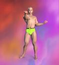 The pose is mine, the head and body shapes are mine, crafted in ZBrush and the shorts are mine, crafted in ZBrush and auto rigged in DS, buckle is set up with a rigid follow node so it stays round regardless of the pose.