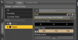 I've had some success, and a little bit of failure, setting innner pages and folding pages. I'm trying to get a custom cover with the page appearance of the MD Book Leather Old (rendering with 3DL), and I've dug through the various files included, found ones for Old, used the materials and settings, tried strictly through the script, but I can't get the same as that book if I use the script for anything. My pages always come out a bit lighter.