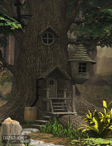 Mystic Hollow comes with an environment set for the hollow and a set for the tree with the tree house. There are also a number of individual props like a morphing mushroom, grass, lanterns, ferns, rock, to help add individuality to your scenes.