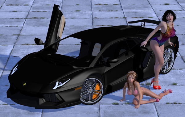 Thought I would post a quick render made in Poser Pro 2014 of your sweet ride. Sorry that I gave it that flat black treatment but I really like that color. You did an awesome job on this beauty that I thought "What better way to show it off than a Car Show" with a couple of my OC's from DA posing with it in bathing suits to add to the sleek line up.