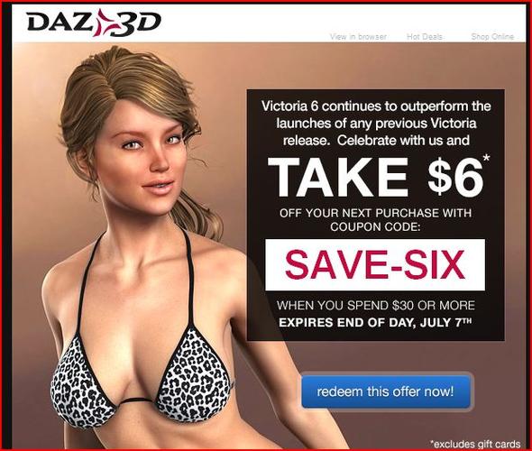 And Daz is selling V6 at such a rate they sent out another coupon. $6 off $30 or more.