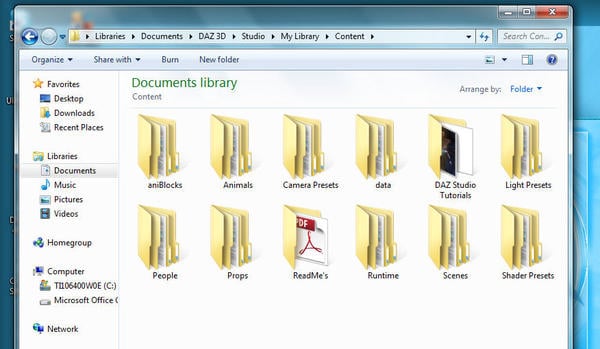 OKAY Quick Help I hope. The FOLDER in the Zip Files named CONTENT is not needed. You open that Folder (after unzipping to a temp folder) and move the Content inside the folder to your YOUR content folder, whatever the Name is. Only the DIM uses that top folder, which is tossed away, the CONTENT inside the folder is all that get's installed. If your Path for Content is Blah/My Library then you Copy Paste or Move the INSIDE contents of the Content folder to My Library.
