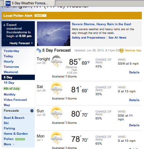 uh ohs - occasional storms begin in 15 minutes. don't expect to lose power, mild wind.