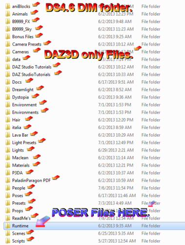 This is POSER only content. PA's used a Trick to get DS files to load from the POSER Runtime. RUNTIME is POSER format. But PA's learned that they did not NEED to do that and ADDED folders above RUNTIME (or outside it) and That is DS content.IF any Content from DAZ3D does NOT have a RUNTIME folder in the ZIP file NOTHING goes in the RUNTIME Folder. ONLY POSER Format content that comes IN a Runtime folder from DAZ goes into the RUNTIME folder. IF no content is IN a Runtime folder then NONE of it is POSER format, it ALL goes in the Folders ABOVE (OutSide) the Runtime folder.