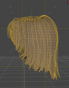 Before I simulate though I want to make absolute sure that the scalp / skullcap is not part of the simulation. Whenever it is, it causes the whole thing to explode. I can't easily paint away just that but fortunately it's a seperate material so in the Materials tab I select that material and zero out the Dynamic Strength. Okay, now that that's done it's time to simulate. After 2 minutes it looked like this: