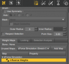 This creates a node parented to the hair. The second pic below shows how that item looks. Select that node and go to the tools menu. Select the weight map brush which looks like a paintbrush on a barbell (see icon below).. Inside the Tools pane that now opens up a menu where you can add a weight map (see the fourth picture below). Finally you are ready to paint. The whole model turns red by default, that mean it is all going to be 100% simulated. The more blue it is, the less it is simulated. If it's grey, it won't be simulate at all, that's what were going for. At this point the cursor should be a big circle, clicking and dragging it around will paint the map. But since it's already all 100% it needs to be painted in reverse. Or unpainted. Or something like that. So hold ALT and now when you drag it makes it more blue (i.e. less simulation). Select whaver verts you want and paint them to your liking. Here's what mine looked like: