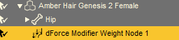 So to do that you need to select the hair, go to the Create drop down menu and select "New dForce Modifier Weight Node." I made a little screen grab of that but the picture is too small to put in my gallery so I can't link it in the body of this post but below it is attached.